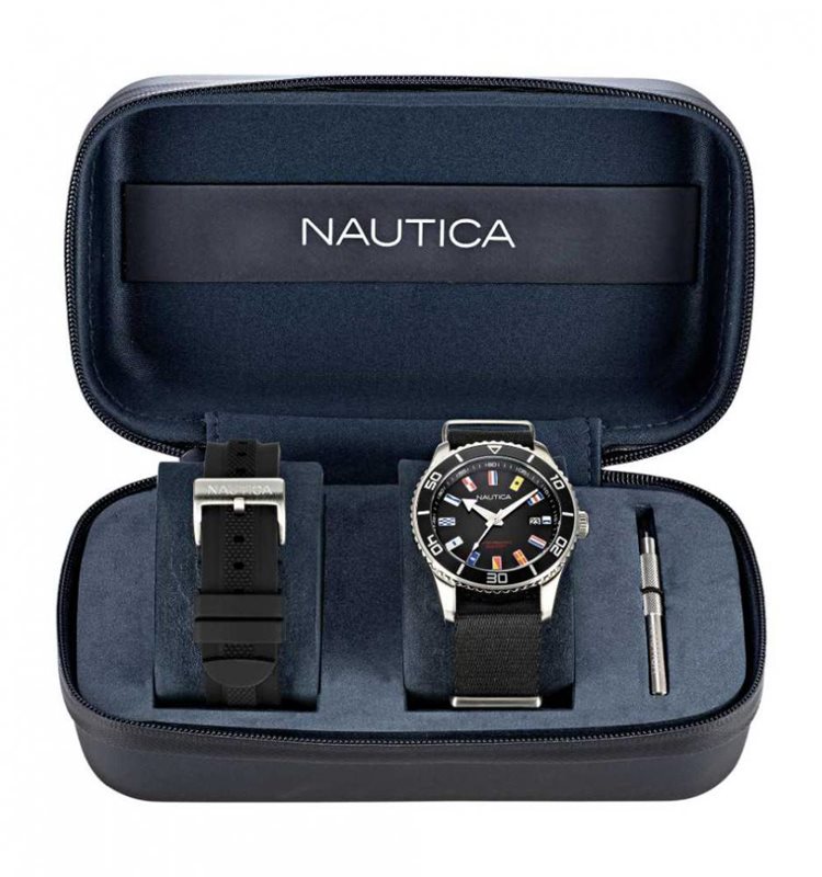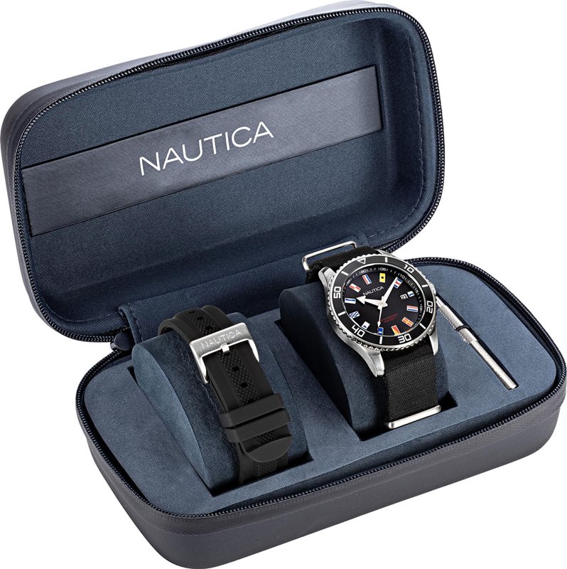 NAPPBF910 שעון יד נאוטיקה דגם מהדורה מיוחדת | סט מתנה במארז כולל רצועות להחלפה | מלאי מוגבל | שנתיים אחריות | Men's Nautica Pacific Beach Box Set Watch NAPPBF910