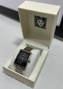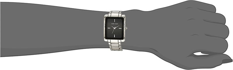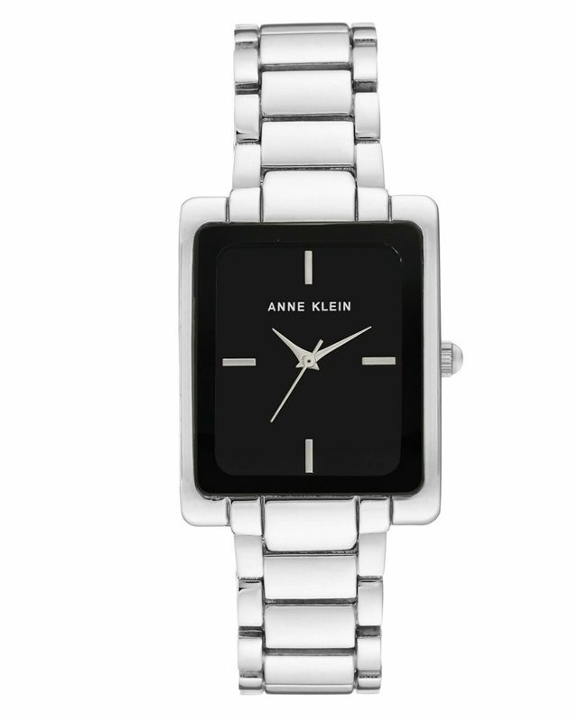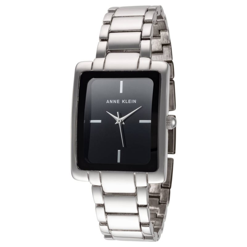 AK-2995BKSV שעון אן קליין מלבני לנשים ברצועת פלדת אל חלד | לוח שחור כולל שנתיים אחריות | Anne Klein Quartz Black Dial Ladies Watch AK/2995BKSV
