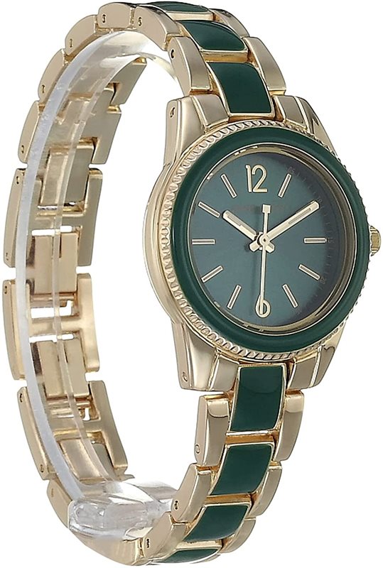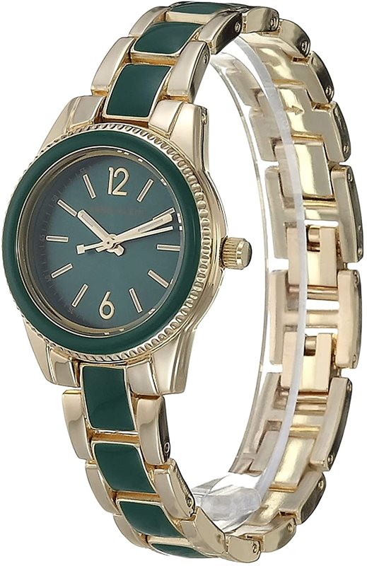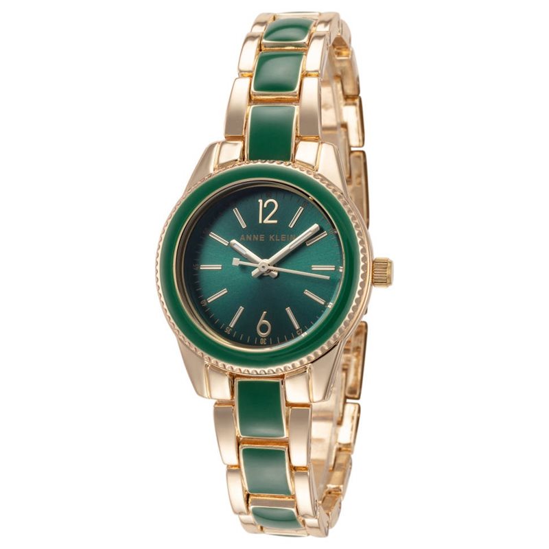 AK-3314GNGB שעון יד מיוחד של אן קליין | שעון אופנה משולב זהב וירוק מיוחד | שנתיים אחריות | מלאי מוגבל | Trend Quartz Green Dial Ladies Watch AK/3314GNGB by Anne Klein