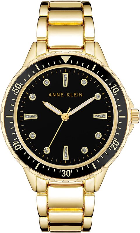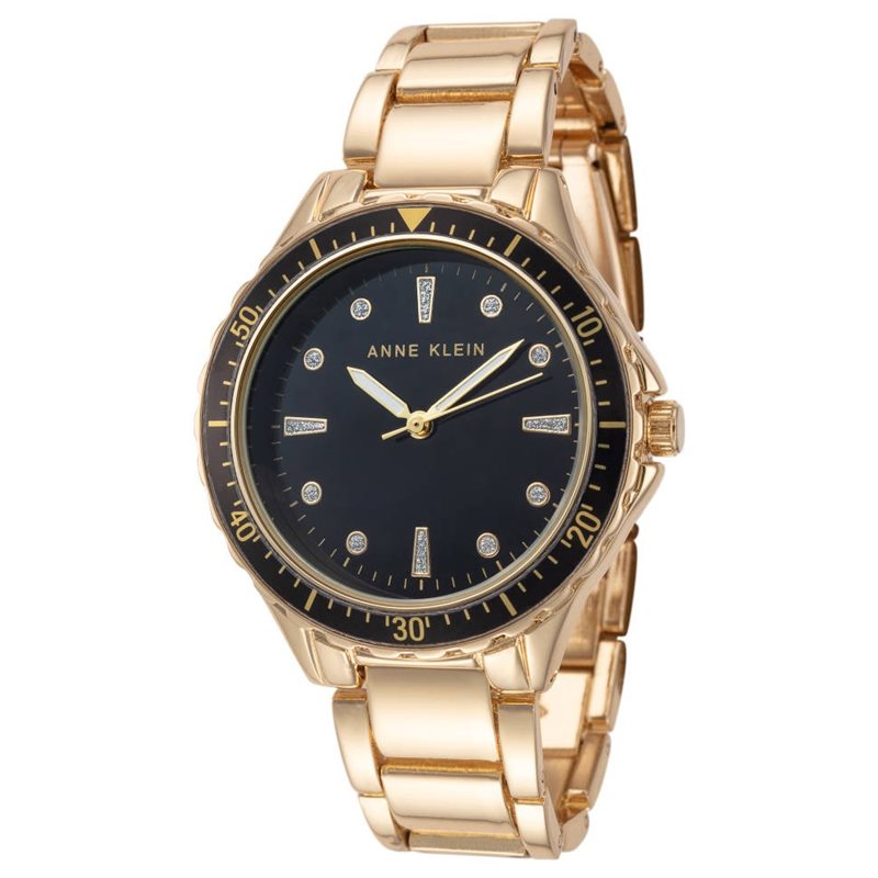 AK-3698BKGB שעון אן קליין זהב בלוח שחור | שילוב מנצח של צבעים | שעון גדול ואופנתי | שנתיים אחריות | מלאי מוגבל | Anne Klein Women's Glitter Accented Bracelet Watch AK-3698BKGB