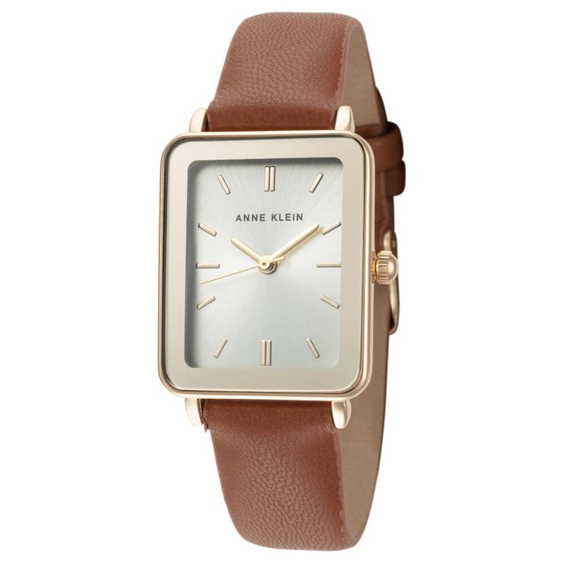 AK-3702CHHY שעון אן קליין אופנתי מלבני לנשים ברצועת עור אלגנטית חומה | מסגרת זהב | חנות שעוני נשים בראשון לציון |Anne Klein Women's Brown Leather Strap Watch AK-3702CHHY