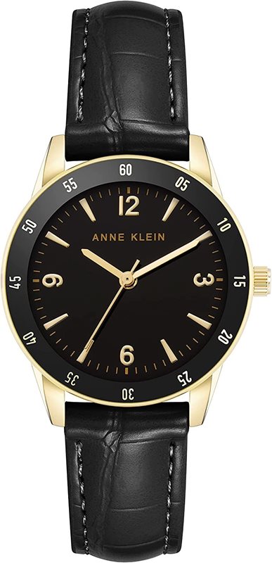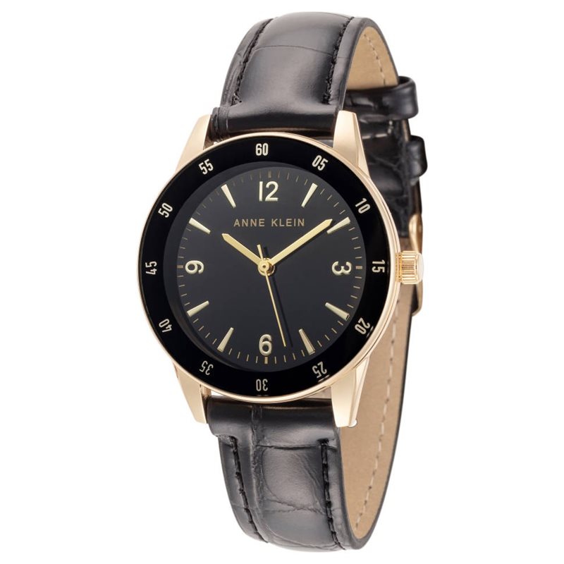 AK-3706GPBK שעון יד לאישה של אן קליין דגם אופנתי אלגנטי בשילוב מנצח של שחר וזהב | רצועת עור שחורה | שעוני אופנה בראשון לציון | Anne Klein Women's Croco-Grain Strap Watch AK-3706GPBK