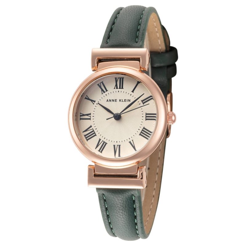 AK-3726RGGN שעון יד אן קליין ברצועת עור ירוקה באזל רוז גולד | ספרות רומיות בלוח מיוחד | שעוני אופנה מיוחדים Anne Klein Women's Strap Watch Navy GREEN/Rose Gold, AK/3726RGGV
