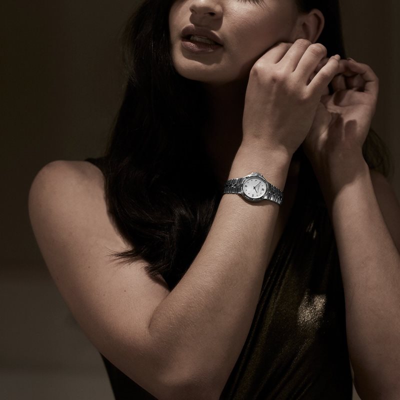 צבע לוח השעון : לבן פנינה ספרות רומיות - משובץ