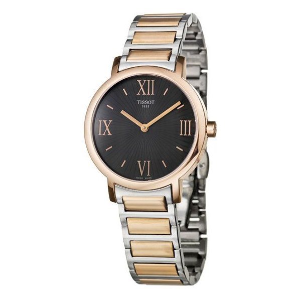 T034.209.32.068.00-שעון יד טיסו שוויץ לנשים | שעון מהקולקצייה החדשה | דגם טוטון רוז גולד בלוח שחור פסים מיוחד | מלאי מוגבל כולל שנתיים אחריות | Tissot Happy Chic Women's Watch T0342093206800
