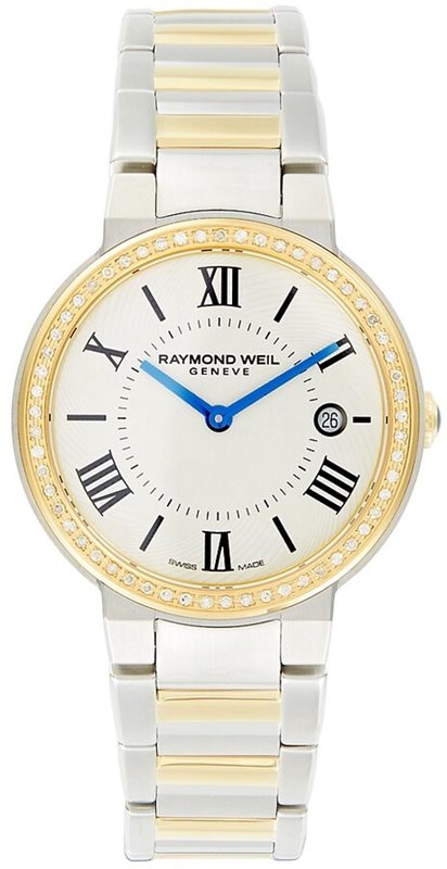 5245-SPS-00661 שעון יוקרה לנשים של ריימונד וויל שוויץ | שעון משובץ 57 יהלומים ברצועה משולבת זהב וכסף | Raymond Weil Jasmine Two-Tone Ladies Watch 5245-SPS-00661