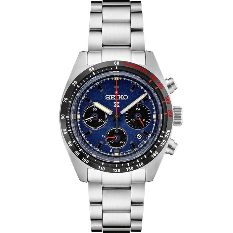 SSC815 שעון סייקו פרוספקס דגם חדש לגברים | שעון סולארי בלוח כחול משולב אדום | שעון ספורטיבי אלגנטי | באזל קרמי | אחריות יבואן רישמי | Seiko Prospex Solar Chronograph SSC815 Blue Dial