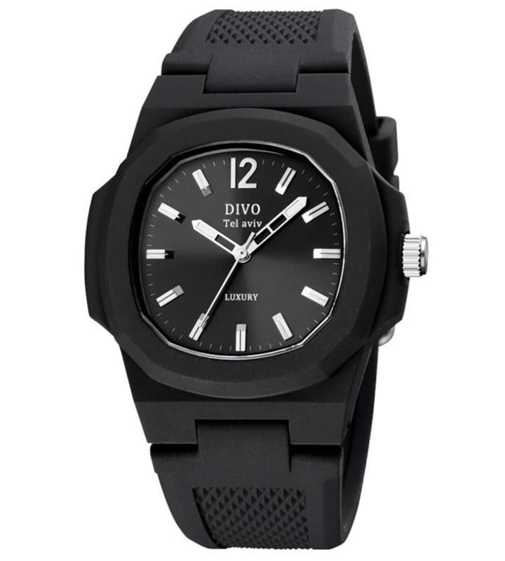 DIVO262602 שעון של דיוו מהדורה מוגבלת TLV | שעון מיוחד בלוח כסוף שחור ספורטיבי אלגנטי | שעון קליל במיוחד כולל שנתיים אחריות | כובע מתנה- מלאי מוגבל | DIVO TLV Quartz black Dial Men's Watch DI2626