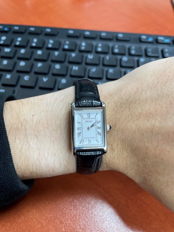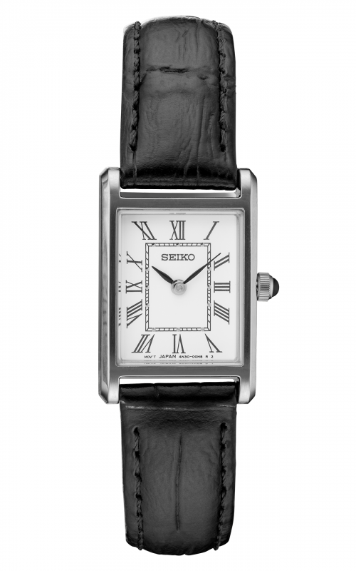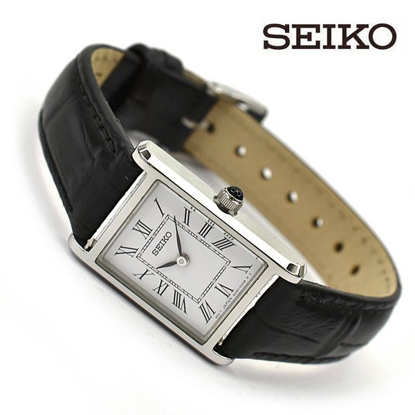 SWR053 שעון יד סייקו מיני לנשים | דגם אלגנטי קלאסי בלוח לבן רומי | שעוני אופנה מיוחדים לנשים | סייקו יפן כולל שנתיים אחריות | מלאי מוגבל | Seiko Quartz White Dial Black Leather Ladies Watch SWR053