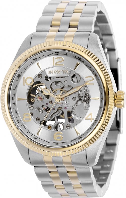37941 שעון יד אינווקטה לגברים | דגם סקלטון טוטון זהב | לוח פתוח מנגנון אוטומטי כולל שנתיים אחריות | Unique Invicta Vintage Mechanical Men's Watch with Two-Tone Band & Silver Case 37941