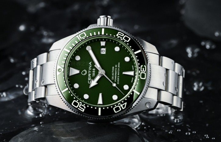 C032.607.11.091.00 שעון מיוחד של סרטינה לגברים | בזל קרמיקה | 43 מ''מ מסדרת אקשן | מנגנון אוטומטי עם 80 שעות טעינה | לוח ירוק מרשים | Watch Certina DS Action Diver 43mm C032.607.11.091.00