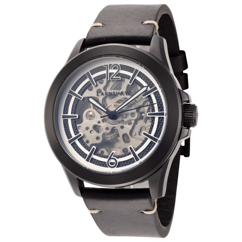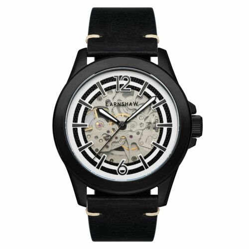 ES-8217-05 שעון אוטומטי של ארנשו ברצועת עור מיוחדת | דגם לגברים כולל שנתיים אחריות | שעונים בראשון לציון | Thomas Earnshaw Men's Murray Skeleton 43mm Black Dial Leather Watch ES-8217-05