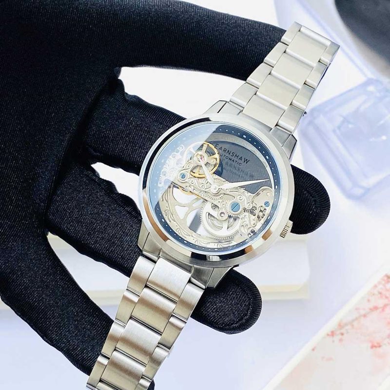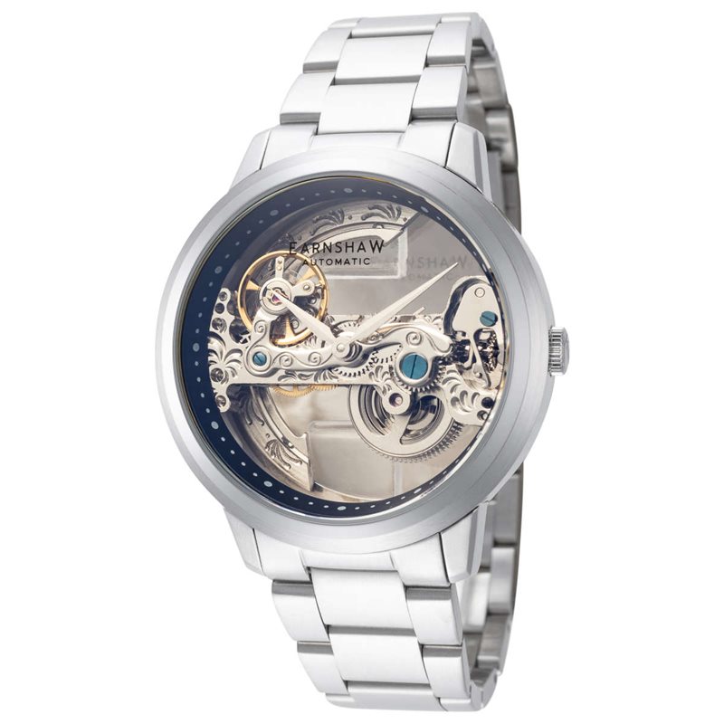 ES-8246-11 שעון יד כסוף של ארנשו לגברים דגם סקלטון מיוחד שקוף | שעוני אופנה אוטומטיים מיוחדים | Thomas Earnshaw Men's ES-8246-11 Cornwall 42mm Automatic Watch