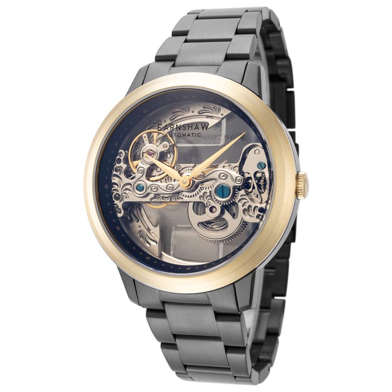 ES-8246-33 שעון מיוחד של ארנשו באזל זהב | רצועת מתכת שחורה | לוח שקוף ומיוחד אוטומטי | מלאי מוגבל בהחלט | שעוני אופנה יוקרתיים | Thomas Earnshaw Men's ES-8246-33 Cornwall 42mm Automatic Watch