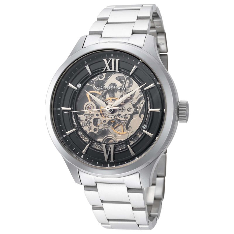 ES-8250-22 שעון אוטומטי לגברים של תומאס ארנשו | דגם בלוח שחור שקוף | חלון אחורי פתוח | שנתיים אחריות | Thomas Earnshaw Men's ES-8250-22 Ruskin 43mm Black Stainless Steel Watch