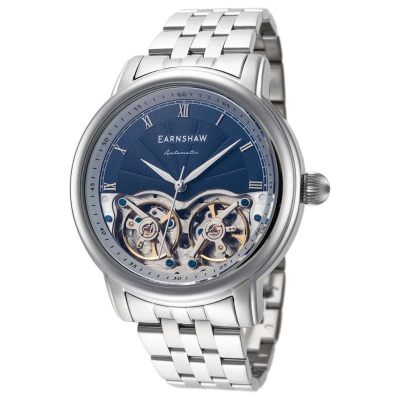 ES-8255-22 שעון יד תומאס ארנשו אוטומטי לגברים | לוח כחול מיוחד ספרות רומיות | חלון אחורי שקוף | מלאי מוגבל כולל שנתיים אחריות | Thomas Earnshaw Armstrong men's automatic watch features