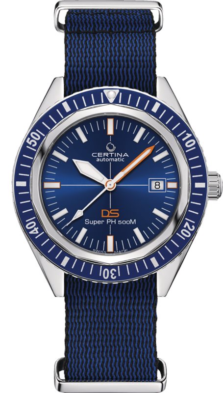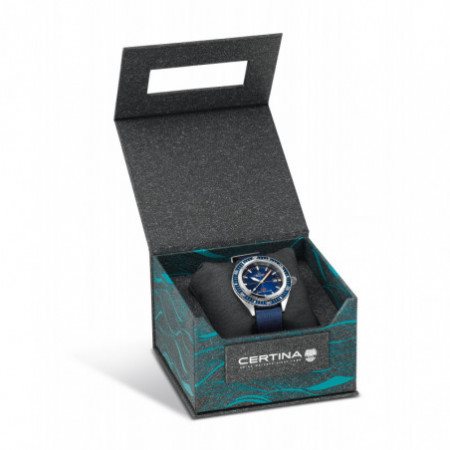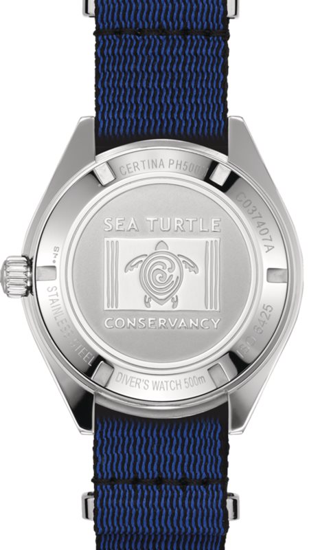C037.407.18.040.10 שעון יד סרטינה DS 500 מהדורה מיוחדת לצבי הים | שעון צלילה מיוחד ברצועת נאטו כחולה | 5 שנים אחריות | Certina DS Super C037.407.18.040.10 Sea Turtle Conservancy Special Edition