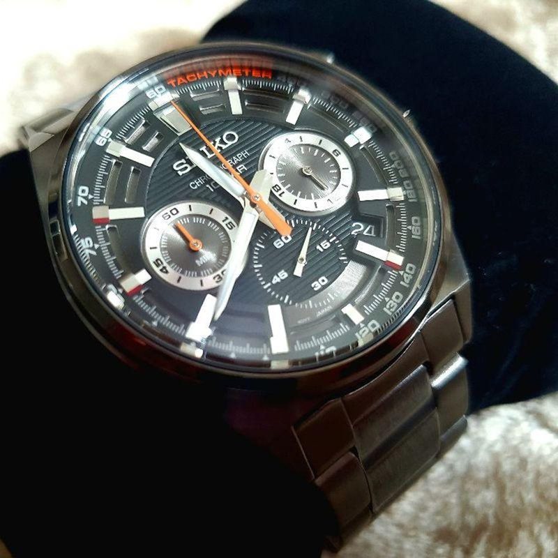 SSB399P1 שעון יד סייקו ספורטיבי אלגנטי שחור כרונוגרף לגברים | לוח שחור עם מחוג אדום למראה ספורטיבי | דגמים חדשים | שנתיים אחריות |Seiko Sport Watch Men's Chronograph Neo SSB399P1