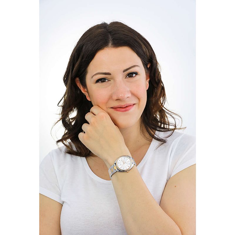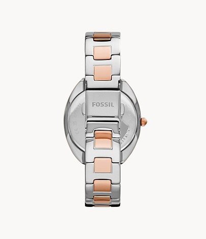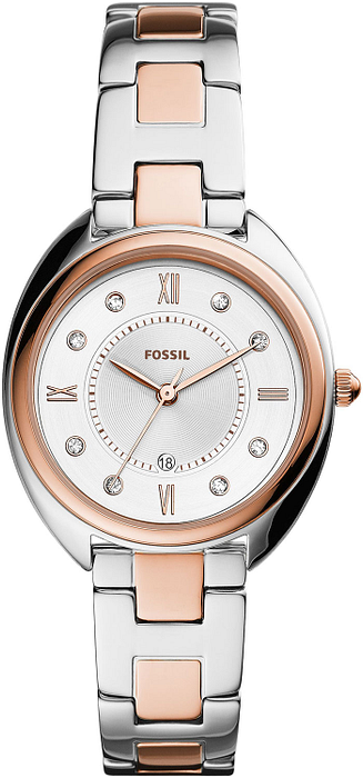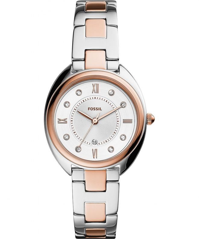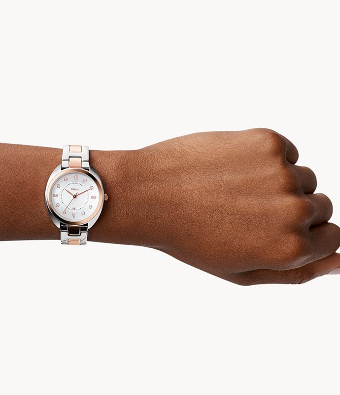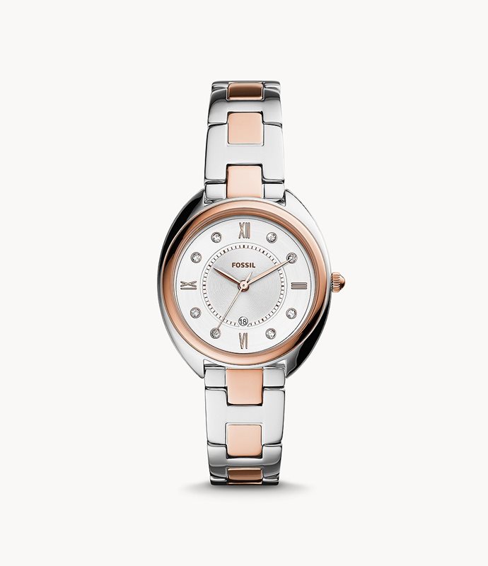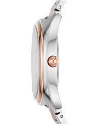 ES5072 שעון אופנתי משובץ זרקונים לאישה | דגם חדש משולב זהב רוז | לוח מיוחד כולל תאריכון ושנתיים אחריות | Gabby Three-Hand Date Stainless Steel Watch - ES5072