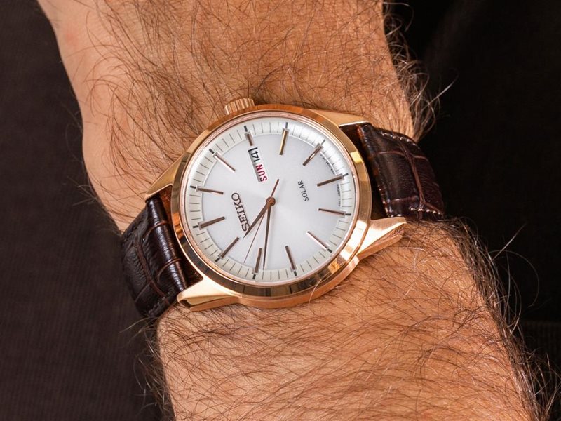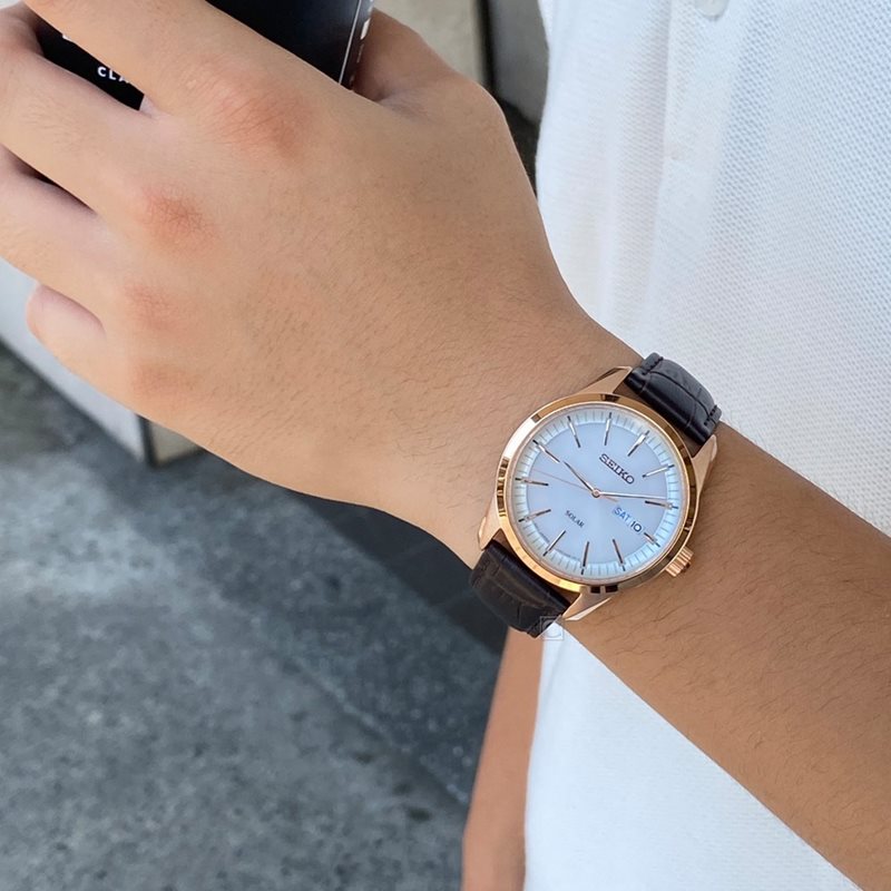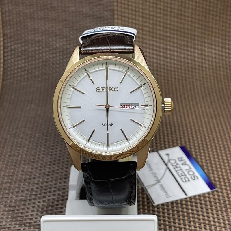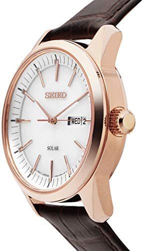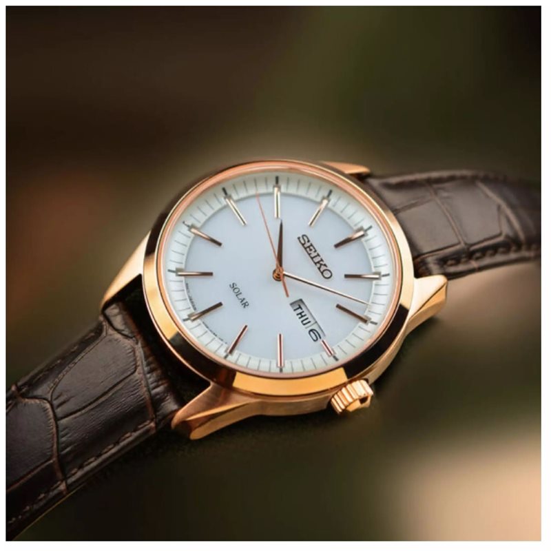 SNE530P1 שעון יד סייקו רוז גולד סולארי ברצועת עור חומה ולוח לבן | כולל תאריכון ימים | שעון אלגנטי קלאסי | שעוני אופנה לגברים בראשון לציון | Seiko Conceptual White Dial Men's Watch SNE530