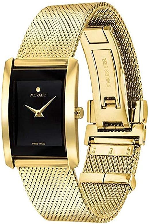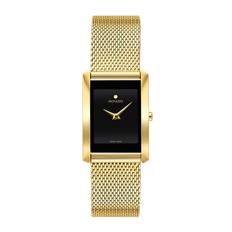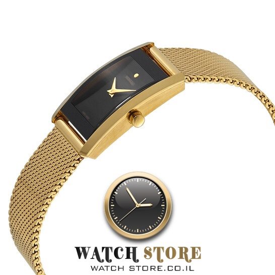 0607189 שעון יד מובאדו מלבני לנשים | גם מיוחד בלוח שחור ורצועת רשת אופנתית | שנתיים אחריות | מלאי מוגבל | שעוני יוקרה שווצריים | Movado 0607189 Women's La Nouvelle Black Dial Quartz