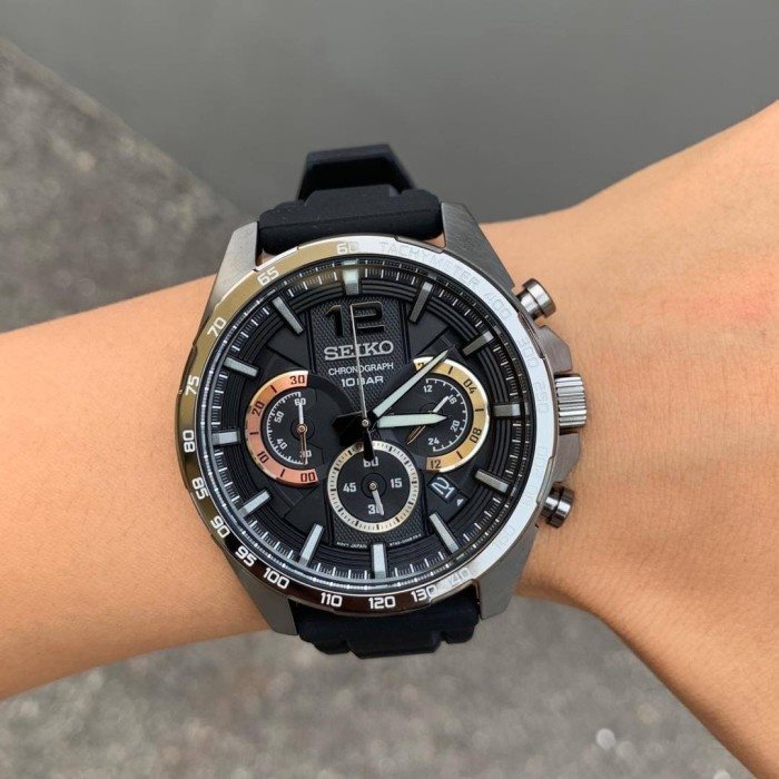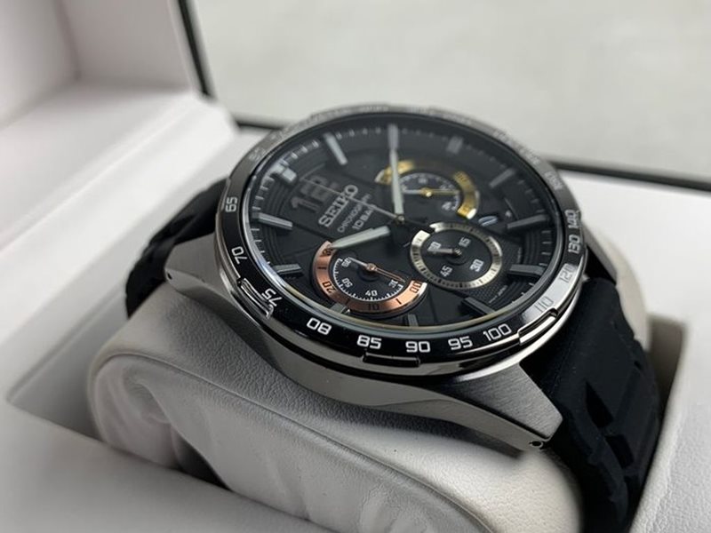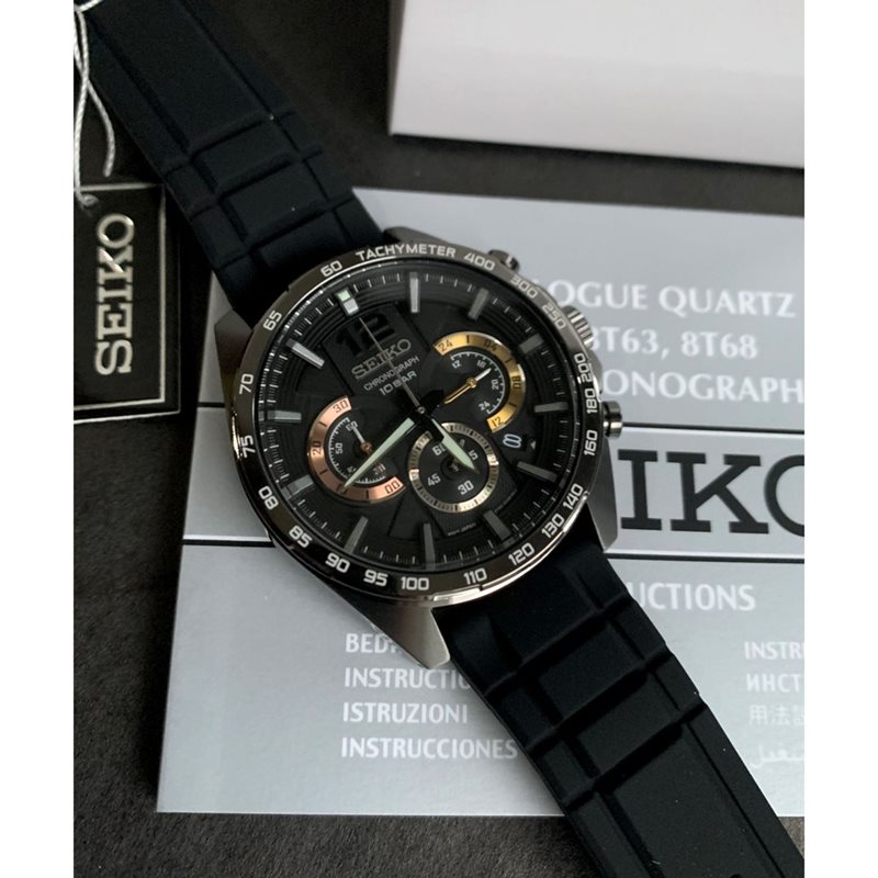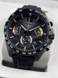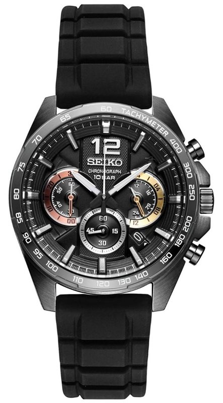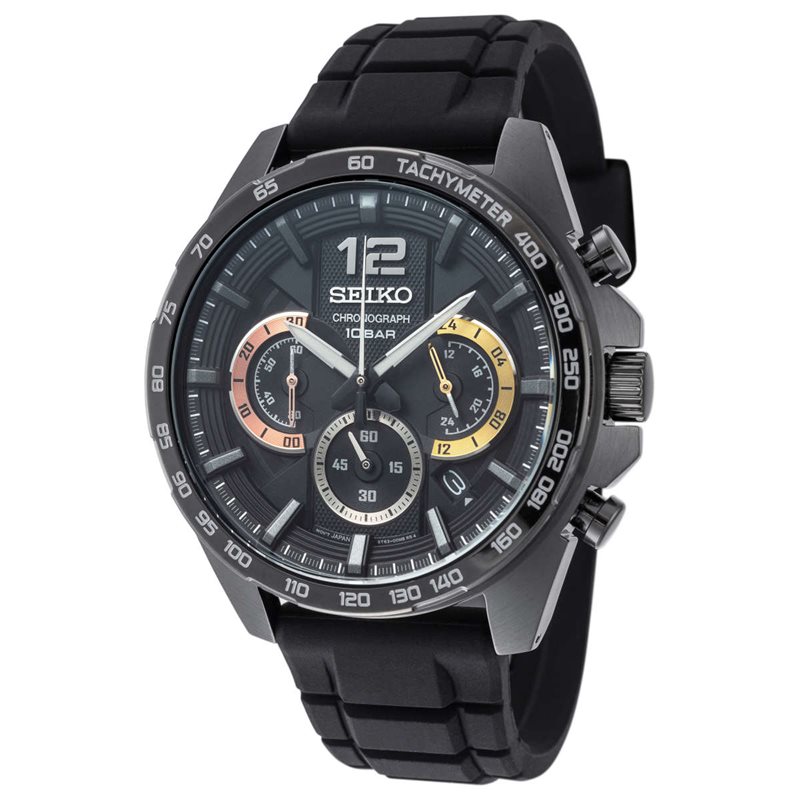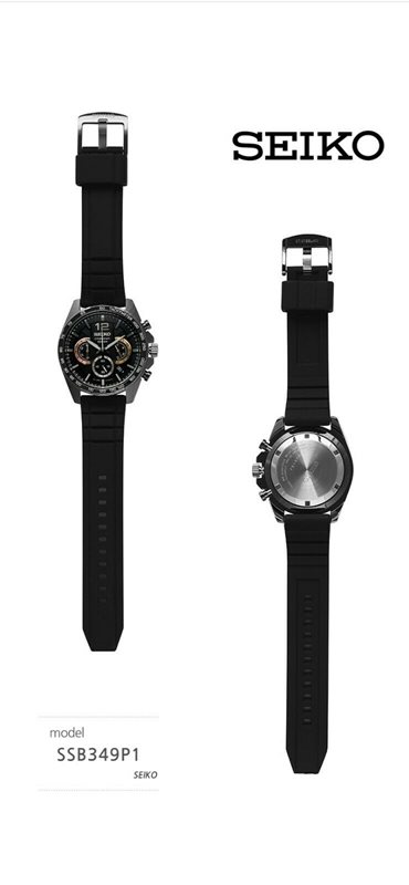 SSB349P1 שעון יד שחור ספורטיבי של סייקו יפן לגברים | דגם ספורטיבי כרונוגרף לוח קרבון כולל תאריכון | שנתיים אחריות | Seiko Chronograph Black Silicone Analog Watch SSB349P1