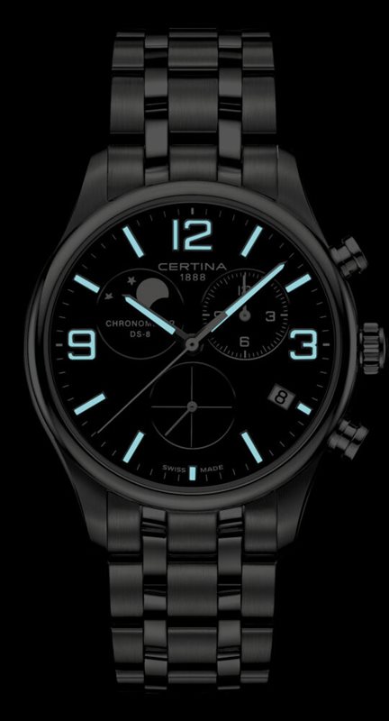 C033.460.11.057.00 שעון יד סרטינה מהמם לגברים בלוח שחור מיוחד עם תצוגת ירח | דגם כרונוגרף כולל 5 שנים אחריות יבואן רישמי | חנות שעוני סרטינה בראשון לציון | Certina C033.460.11.057.00 DS 8 model series