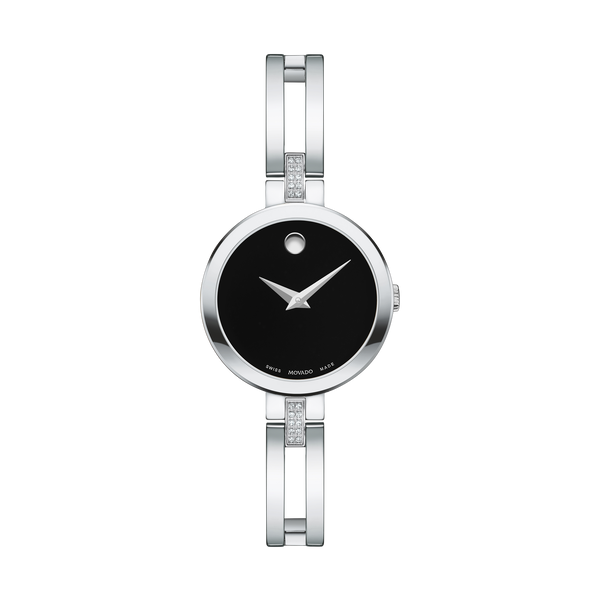 0607471 שעון יוקרתי לאישה של מובאדו שוויץ | דגם מיני בעיצוב צמיד משובץ 20 יהלומים | שעוני מובאדו לנשים במבצע | Movado Esperanza Diamond Accent Bangle Watch with Black Dial 0607471