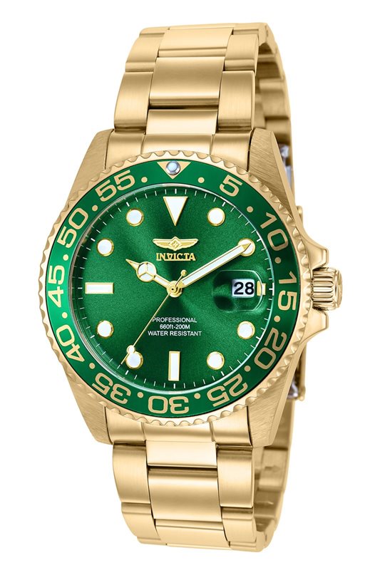 36543 שעון יד אינווקטה לגברים | דגם ספורטיבי זהב בלוח ירוק מיוחד | שעון צלילה כולל שנתיים אחריות | Invicta men's Pro Diver 36543 Quartz Watch