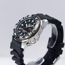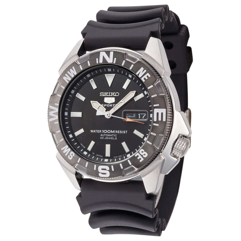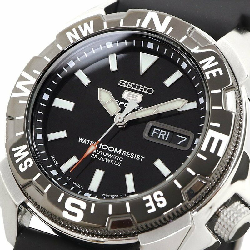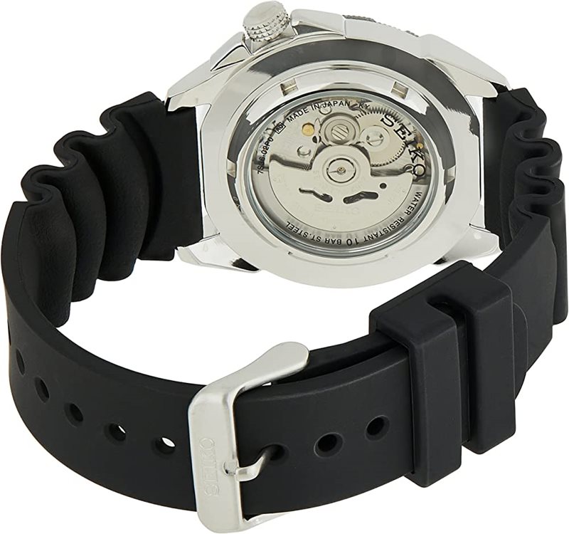 SNZE81J2 סייקו 5 שעון צלילה לגברים | דגם אייקוני ברצועת סיליקון | מנגנון אוטומטי לוח אחורי שקוף | באזל מצפן מסתובב |שנתיים אחריות | Seiko Series 5 Automatic Black Dial Men's Watch SNZE81J2