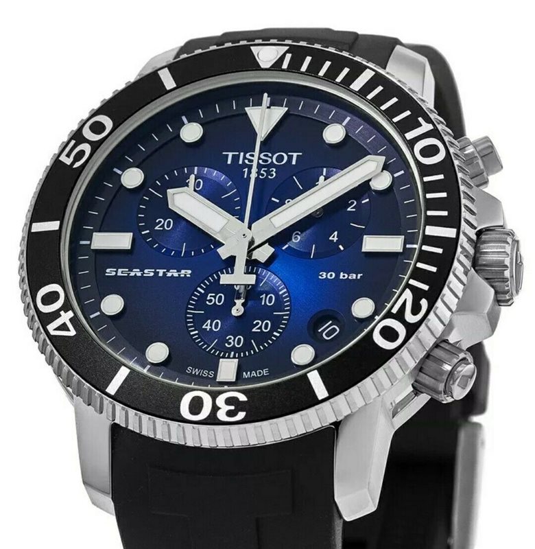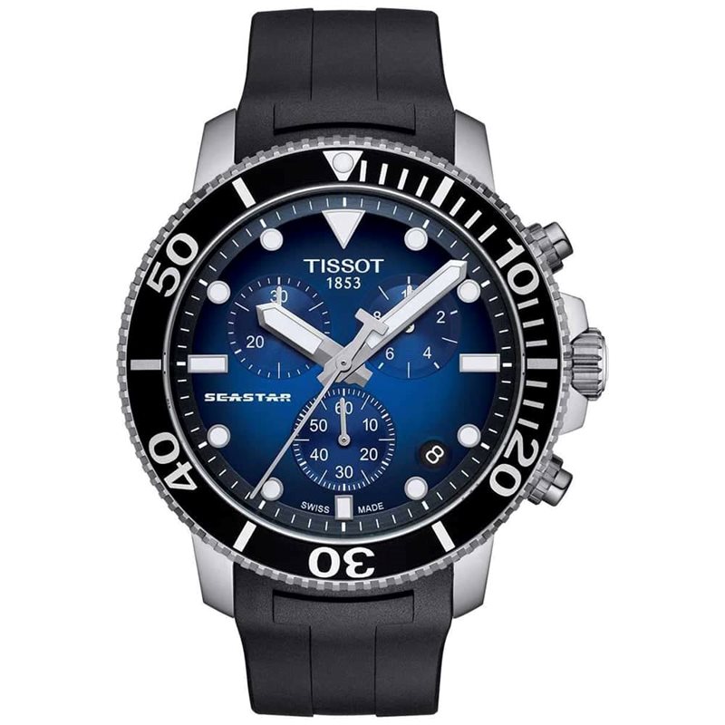 T120.417.17.041.00 שעון צלילה ספורטיבי לגברים של טיסו מסדרת סי סטאר | לוח כחול מיוחד ברצועת סיליקון | 3 שנים אחריות | Tissot Seastar 1000 Chronograph Blue Dial Men's Watch T12041717041