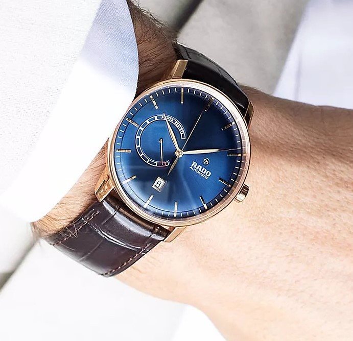 R22879205 שעון ראדו יד 2 לגברים | דגם במצב חדש בין 3 חודשים | מנגנון אוטומטי חלון אחורי שקוף | לוח כחול פאוור רזרב | כולל 18 חודשים אחריות | Rado Coupole Classic XL Automatic Blue Dial Men's Watch