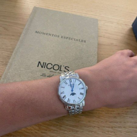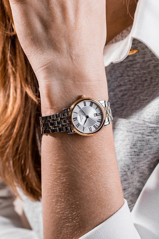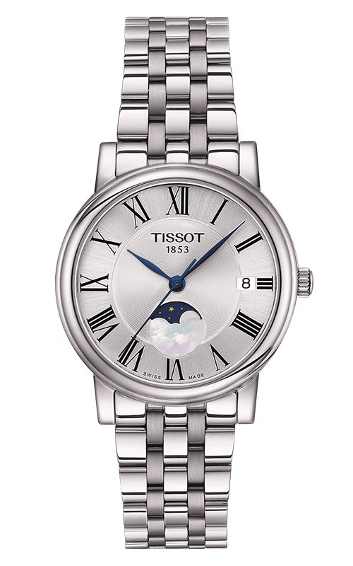 T122.223.11.033.00 שעון טיסו לנשים דגם מון פייס כסוף | מנגנון שווצרי | דגם מיוחד בלוח רומי כולל תאריכון | אחריות יבואן רשמי | Tissot Carson Premium Lady Moonphase Women's Watch T1222231103300