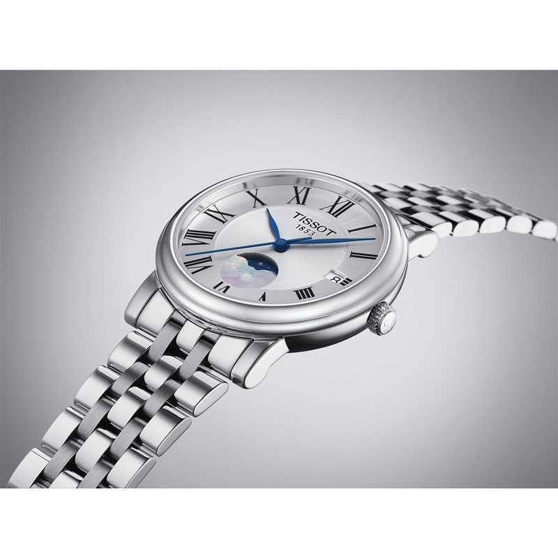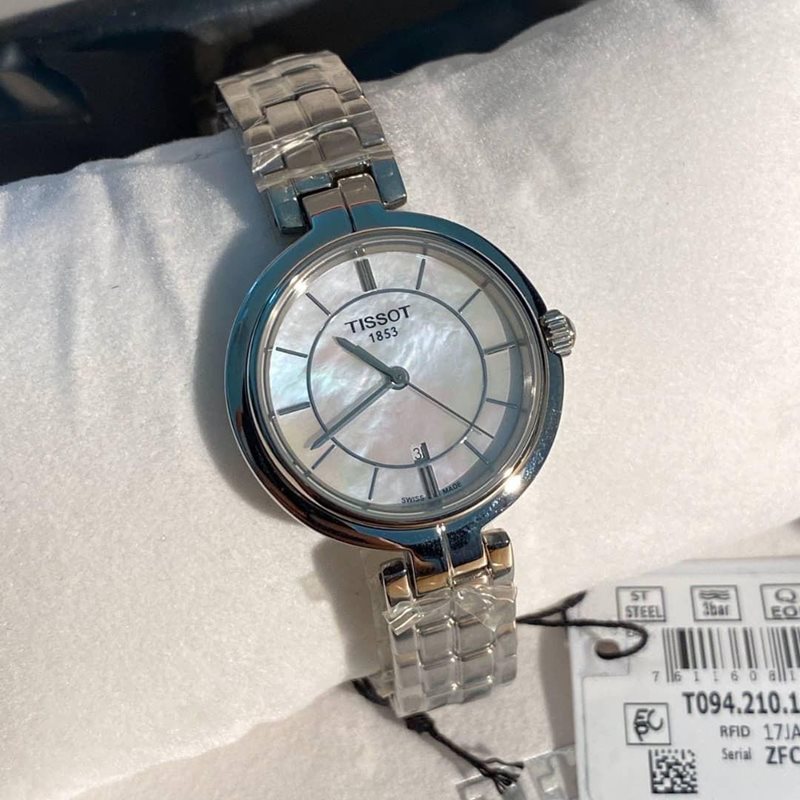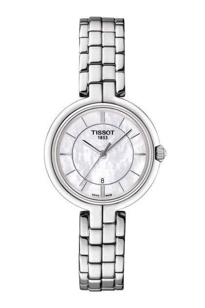 T094.210.11.111.00 שעון טיסו לאישה | לוח פנינה ברצועת מתכת כסופה | שעוני אופנה יוקרתיים לנשים במבצע | Tissot Flamingo 30mm Ladies Watch T0942101111601