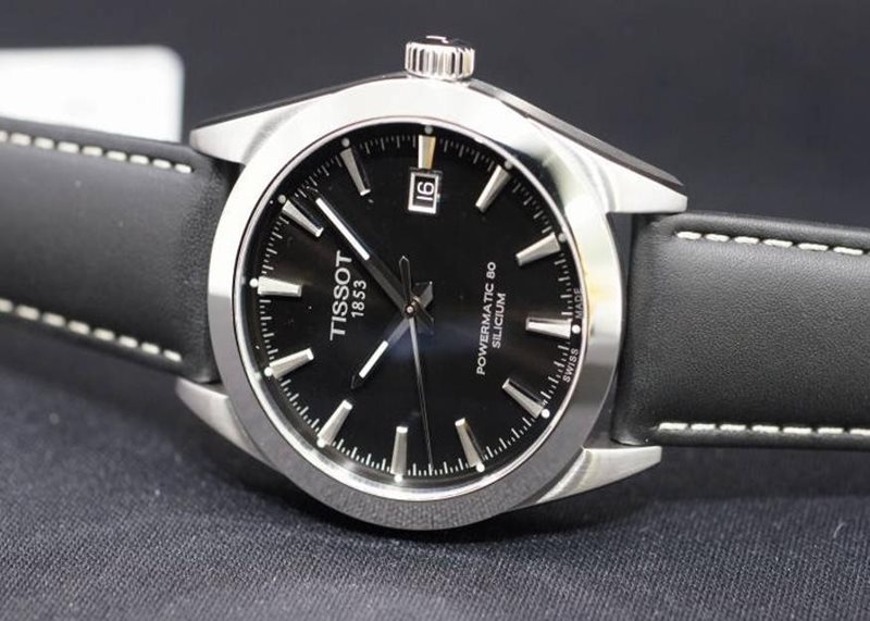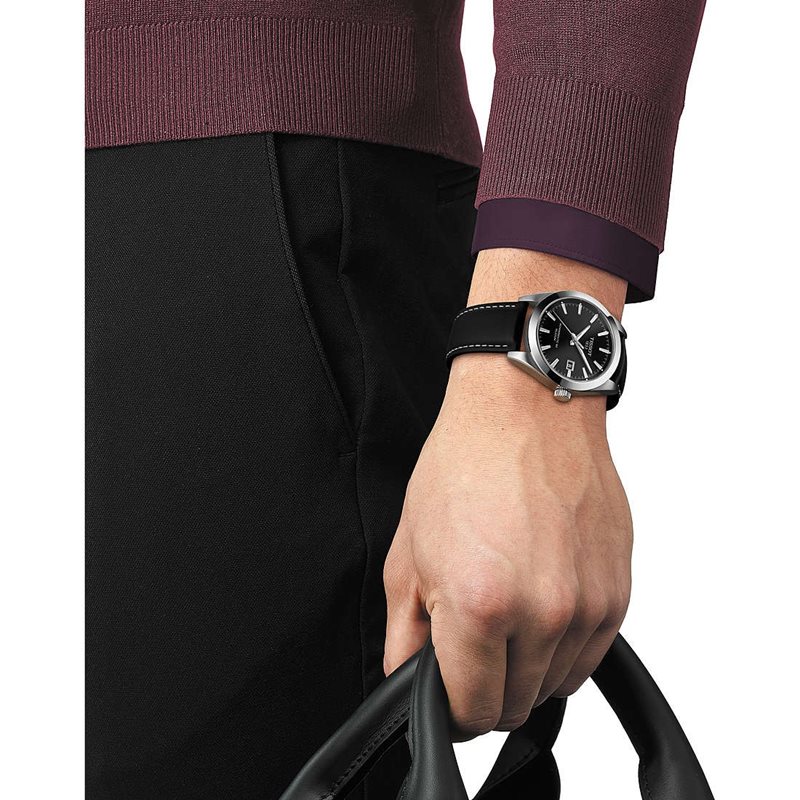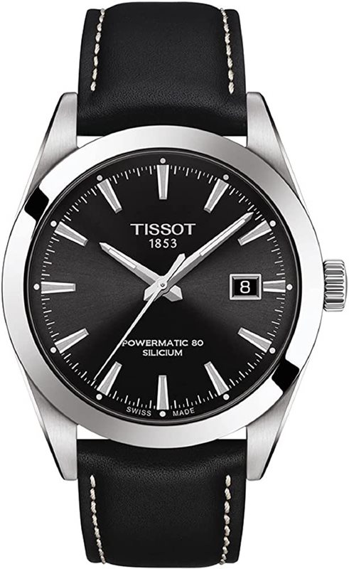 T127.407.16.051.00 שעון טיסו אוטומטי לגברים | שעון אלגנטי מנגנון פאוורמטיק 80 חלון אחורי שקוף | רצועת עור שחורה תפרים לבנה | אחריות יבואן רישמי | Tissot T-Classic Powermatic 80 Silicium T1274071605100