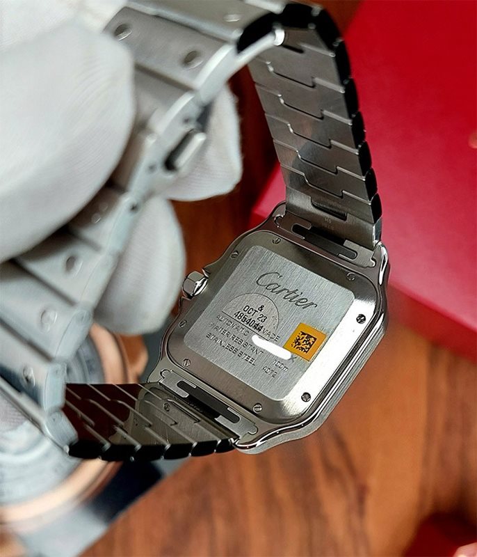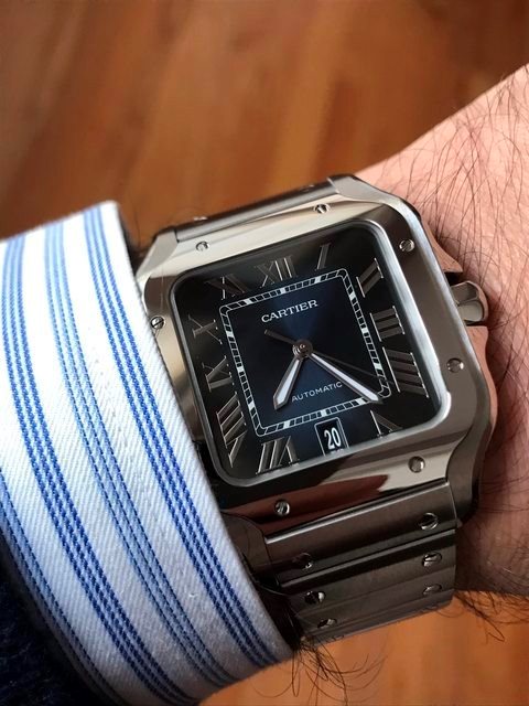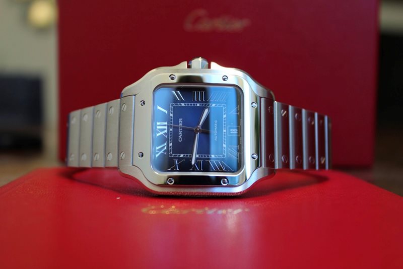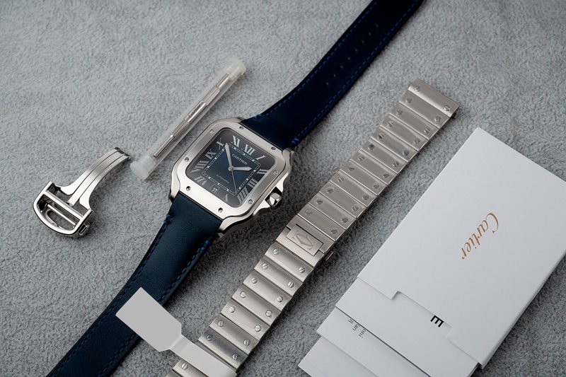 WSSA0030 קרטייה סנטוס אוטומטי לגברים יד 2 שנת 2022 בלוח כחול רומי | מגיע כסט עם רצועת עור כחולה נוספת להחלפה מהירה | אחריות בין לאומית |Cartier Santos WSSA0030 Large Blue Dial 39.8mm Steel