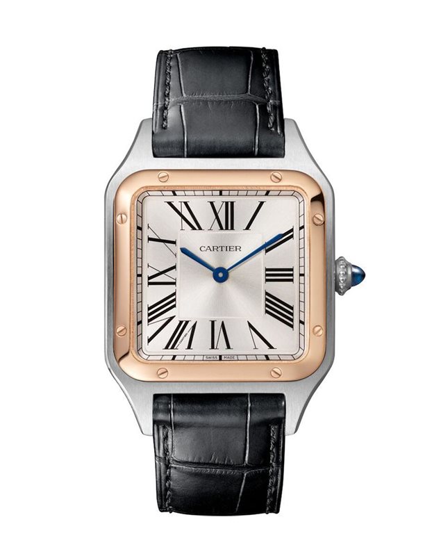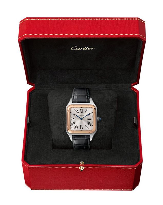 W2SA0011 שעון קרטייה דמונט משולב זהב רוז גולד 18K ברצועת עור דגם לארג' יוניסקס אחריות בין לאומית | מלאי מוגבל | Cartier Santos-Dumont Watch Large Model, Quartz Movement, Gold, Steel, Leather W2SA0011