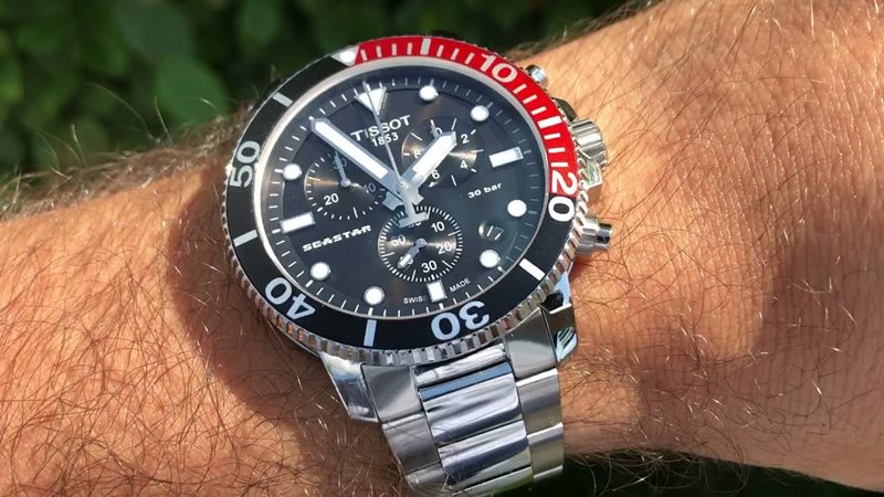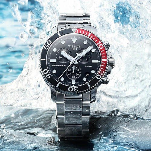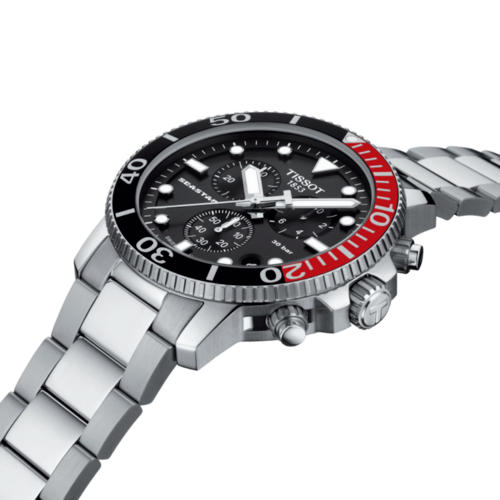 T120.417.11.051.01 טיסו שעון יוקרתי ספורטיבי לגברים מסדרת סי סטאר | דגם פפסי באזל שחור אדום ואינדקס זוהר בחשכה | אחריות יבואן ל 3 שנים T120.417.11.051.01 Tissot Seastar 1000 Chronograph