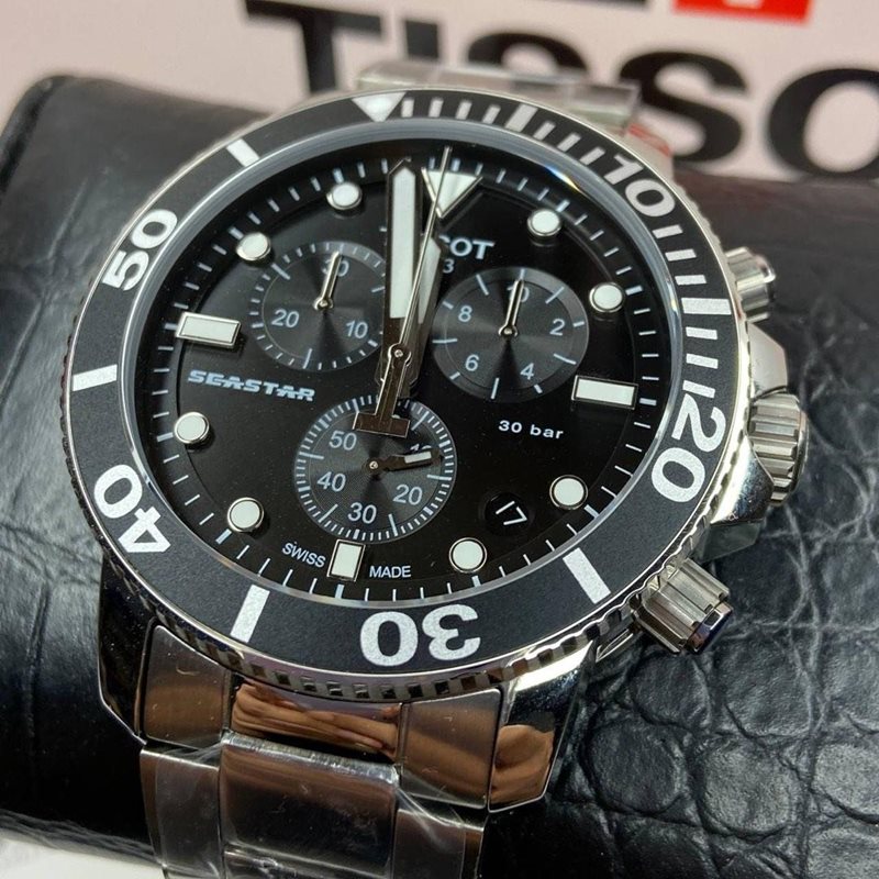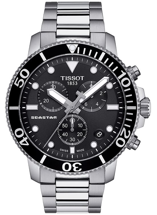 T120.417.11.051.00 שעון טיסו מסדרת סיסטאר לגברים | דגם כרונוגרף גדול צלילה | לוח ומחוגים זוהרים | אחריות יבואן ל 3 שנים | Tissot Seastar 1000 Chronograph Watch T1204171105100