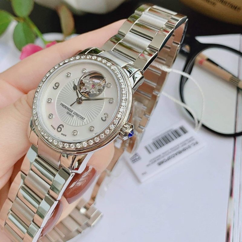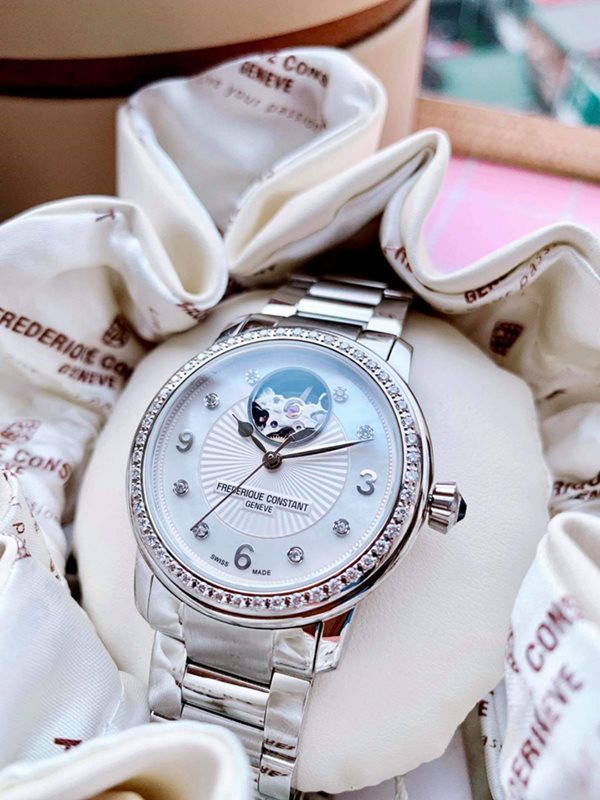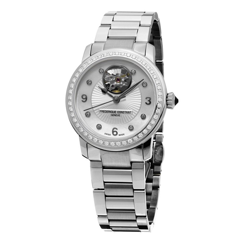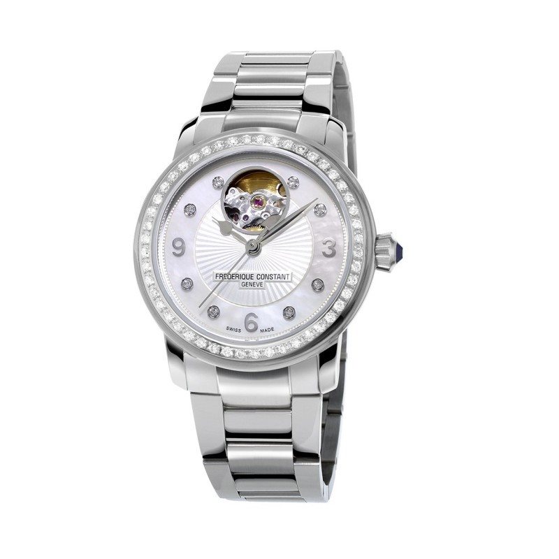 FC-310HBAD2PD6B שעון יוקרה של פרדריק קונסטנט לאישה | דגם משובץ 56 יהלומים בבאזל ובלוח מנגנון אוטומטי | חלון אחורי שקוף | שנתיים אחריות | מלאי מוגבל | Frederique Constant FC-310HBAD2PD6B Heart Beat