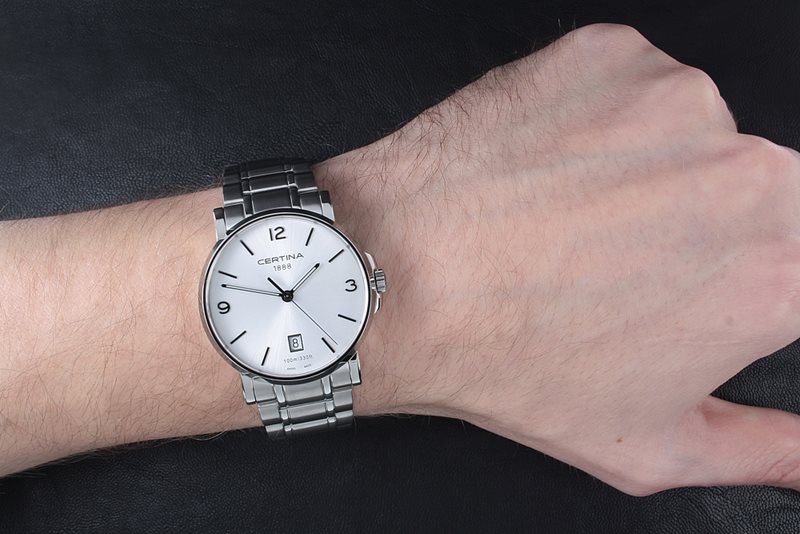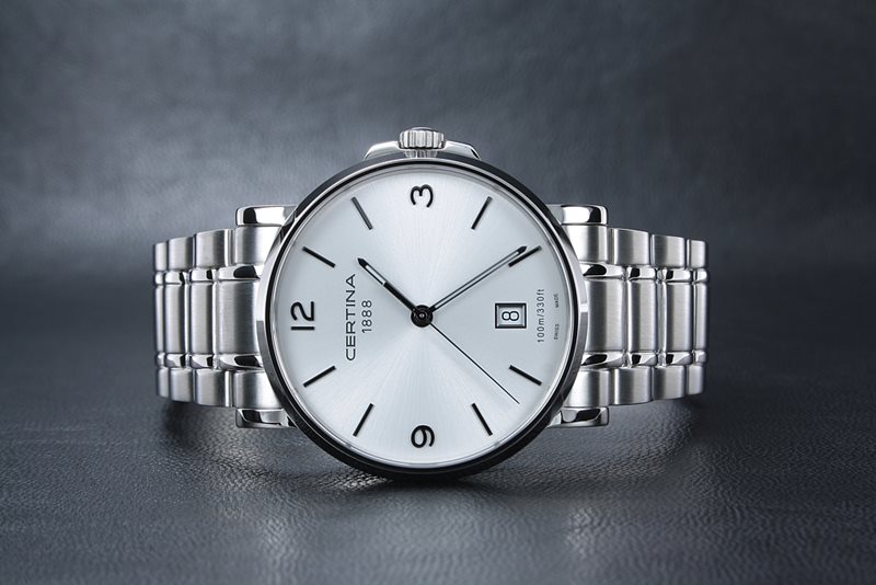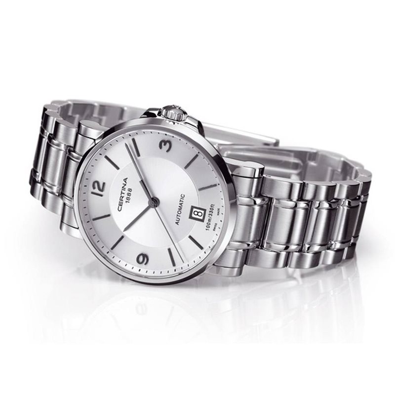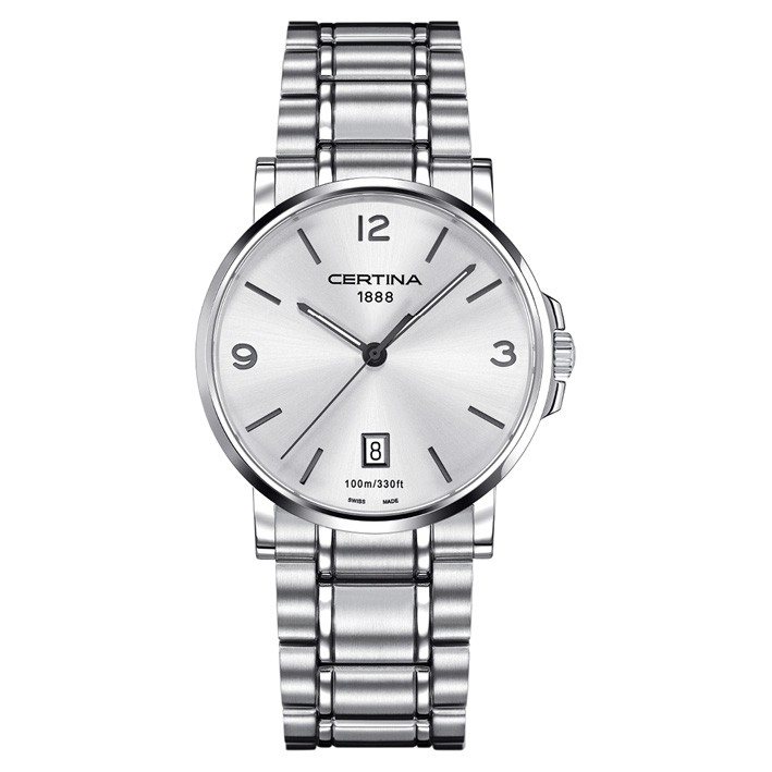 C017.410.11.037.00 שעון סרטינה קלאסי אלגנטי ספורטיבי לגברים | לוח כסוף כולל תאריכון | 5 שנים אחריות | Certina DS Caimano Quartz Silver Dial Stainless Steel Ladies Watch C0174101103700
