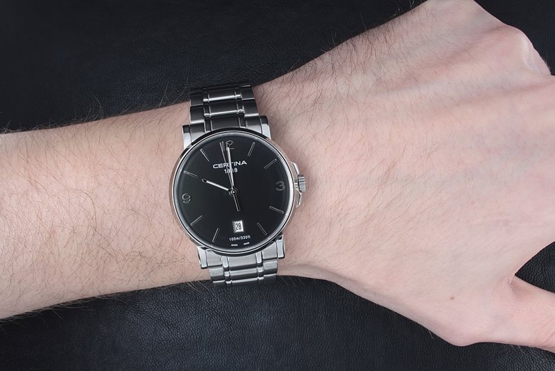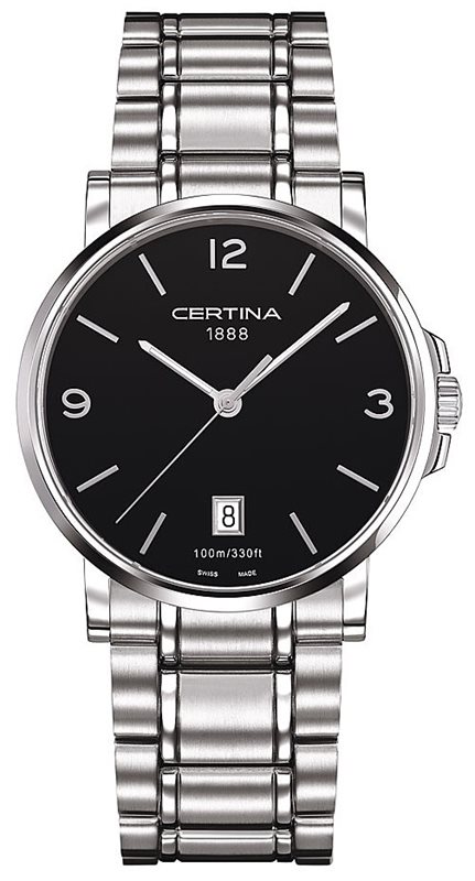 C017.410.11.057.00 שעון סרטינה קלאסי לגברים מסדרת קיימנו לוח שחור כולל תאריכון | 5 שנים אחריות | מלאי מוגבל | Certina DS Caimano Quartz Black Dial Men's Watch C0174101105700