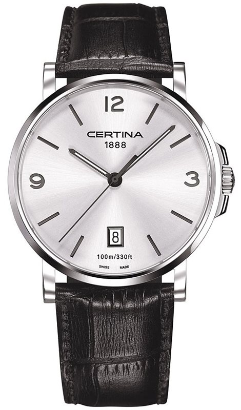 C017.410.16.037.00 שעון סרטינה קלאסי אלגנטי לגברים בלוח כסוף כולל תאריכון | מחוגים זוהרים בחשכה | 5 שנים אחריות | Certina DS Caimano Quartz Silver Dial Men's Watch C0174101603700