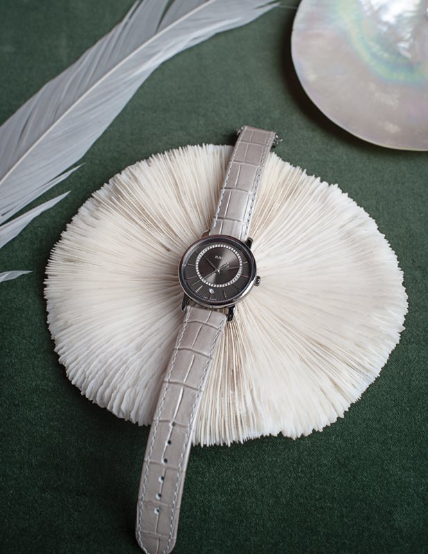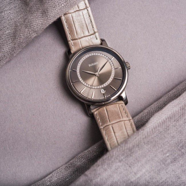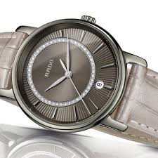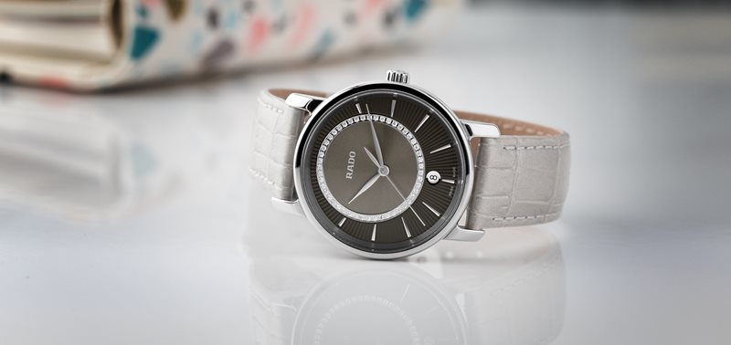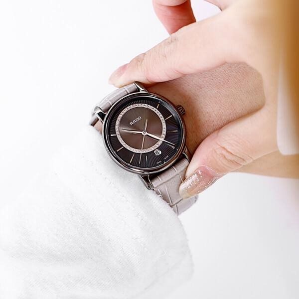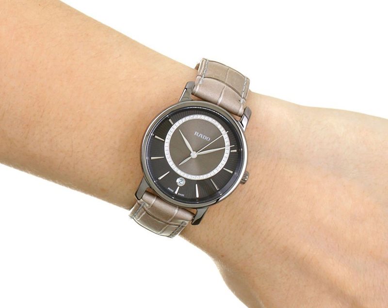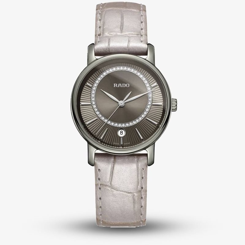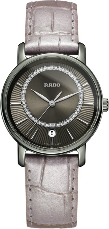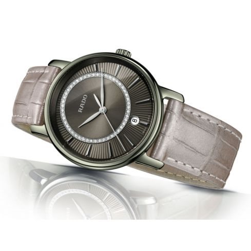 R14064715 שעון יוקרה מיוחד של ראדו לנשים | דגם קרמיקה ברצועת עור | לוח אפור מיוחד משובץ 24 יהלומים | שנתיים אחריות | Rado R14064715 Diamaster Diamonds Women's Watch
