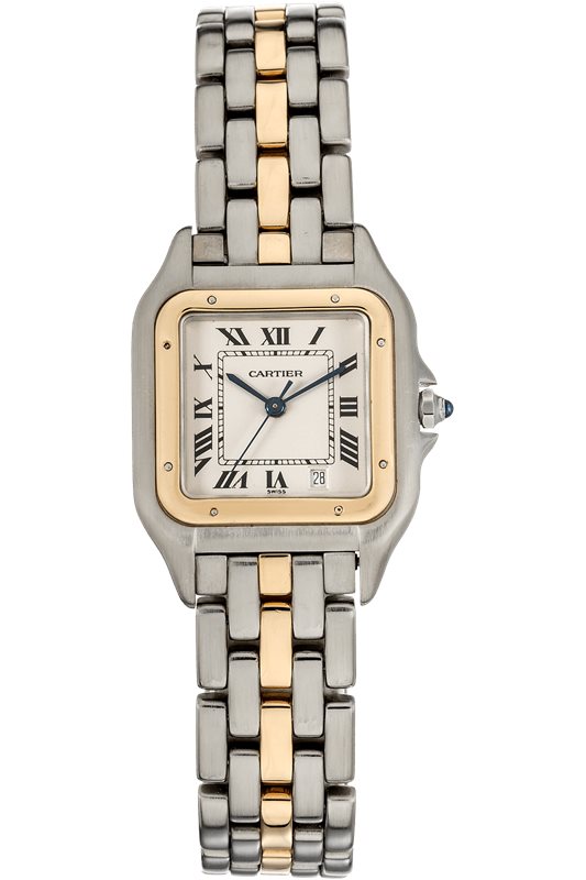 1057917 שעון קרטייה פנתר סמול לנשים יד 2 דגם משולב שורה זהב 22 מ''מ באזל זהב 18K | שעוני יוקרה יד 2 לאישה Pre-owned Cartier Panthere Quartz Watch 1057917