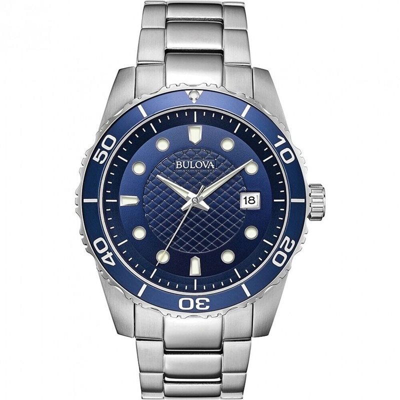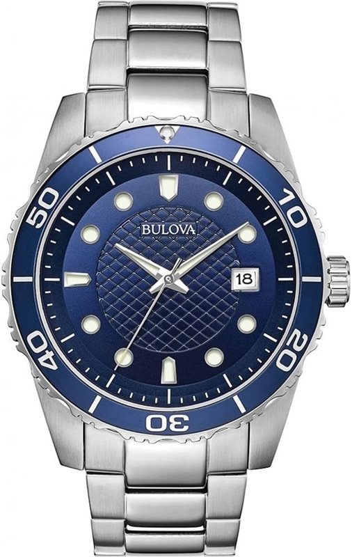 98A194 שעון בולובה בלוח כחול מיוחד | אינדקס זוהר בחשכה כולל תאריכון | שעון יוקרתי במלאי מוגבל | שנתיים אחריות | Bulova Sport Blue Dial Stainless Steel Men's Watch 98A194