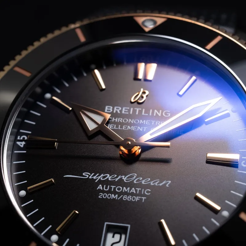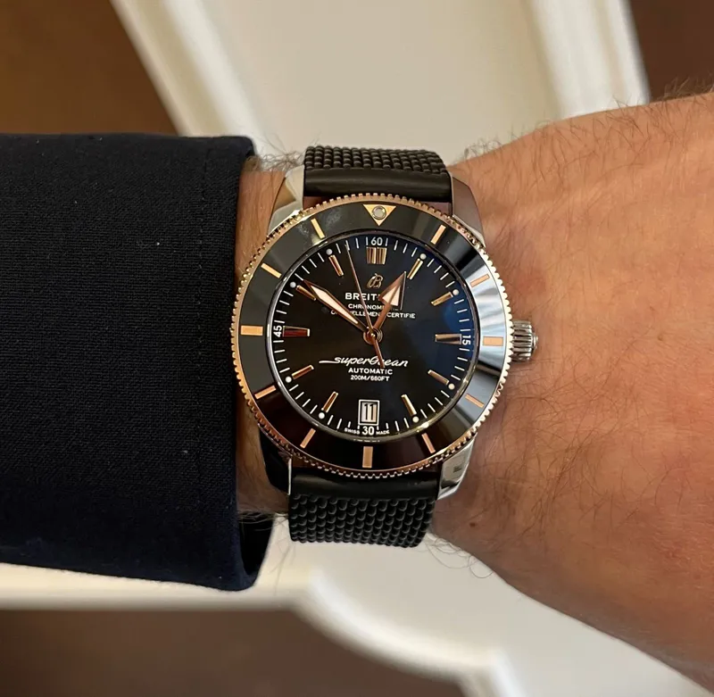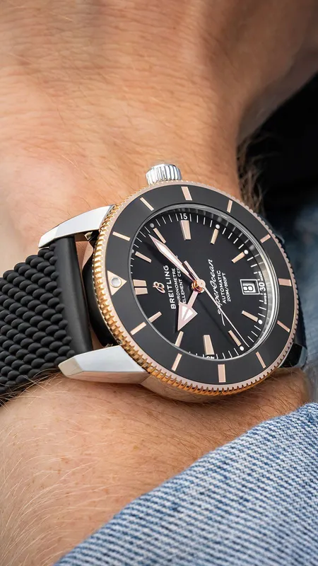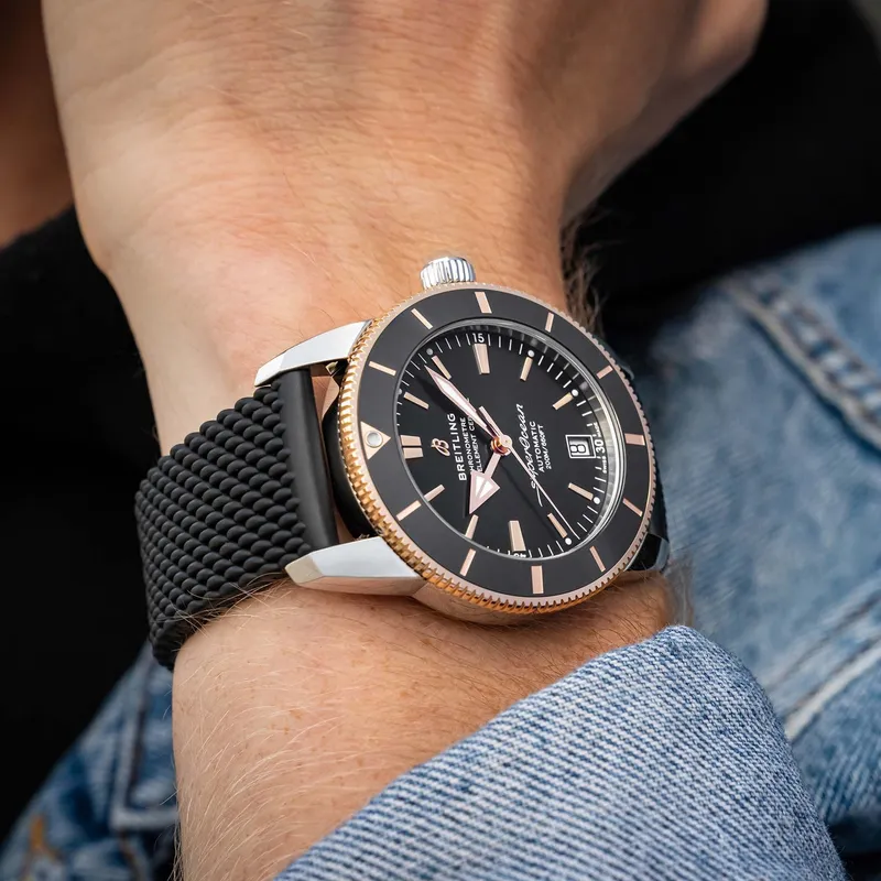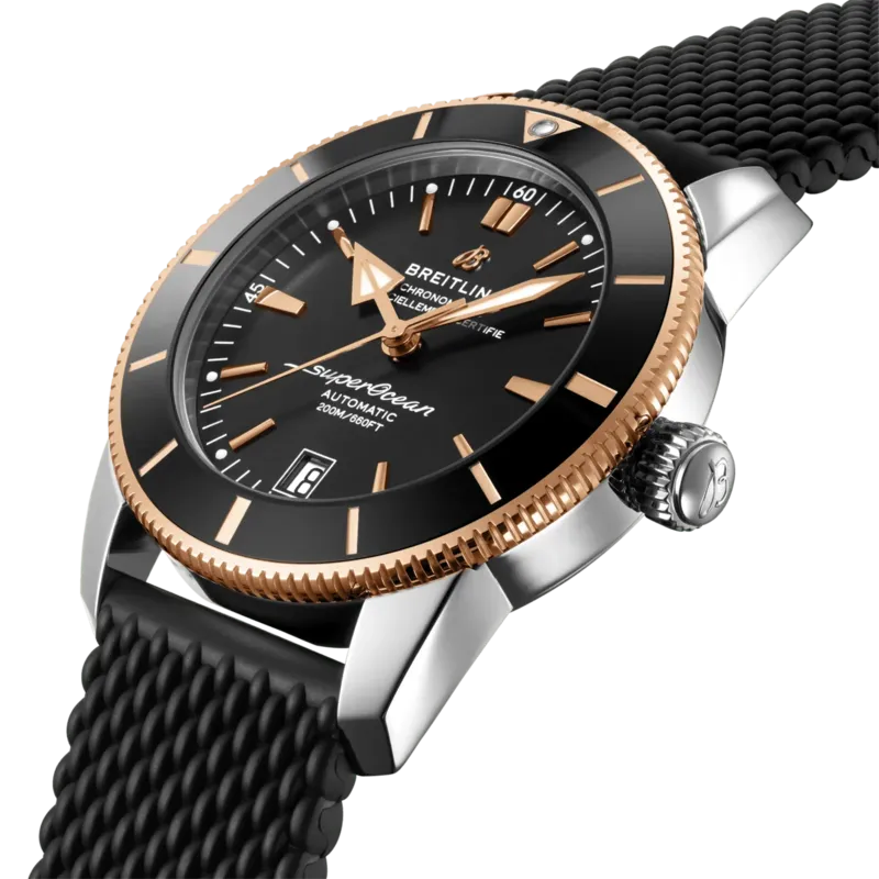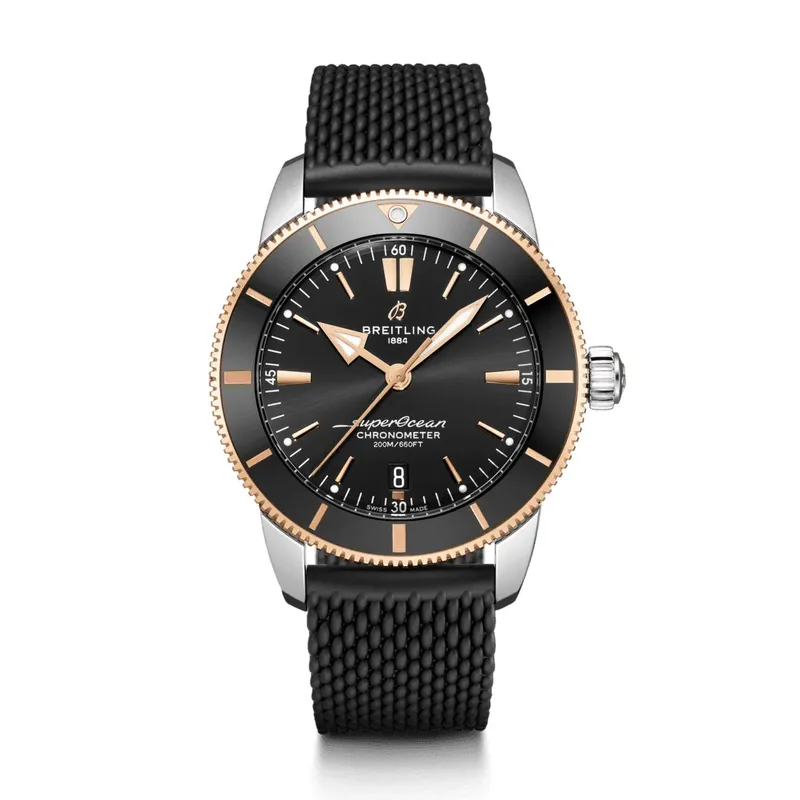 UB2010121B1S1 ברייטלינג סופר אושן 42 מ''מ יד 2 שחור באזל זהב 18K | דגם לגברים אחריות ל 3 שנים | breitling Superocean Heritage B20 Automatic 42 Watch UB2010121B1S1
