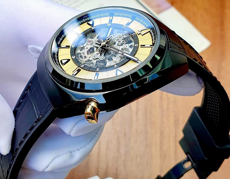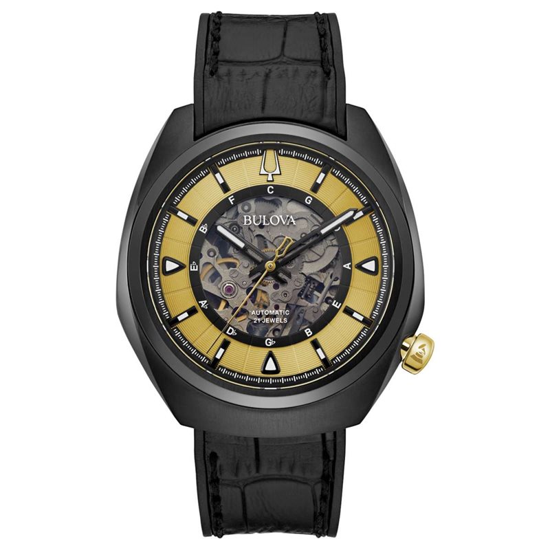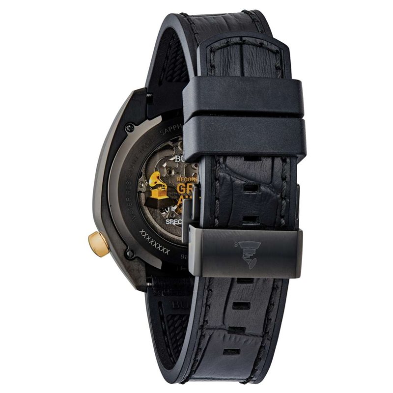 98A241 שעון יד בולובה דגם במהדורה מיוחדת | מנגנון אוטומטי רצועת עור על סיליקון | דגם סקלטון במלאי מוגבל | שנתיים אחריות | Bulova Grammy Skeleton Dial Automatic Men's Watch 98A241