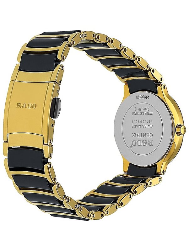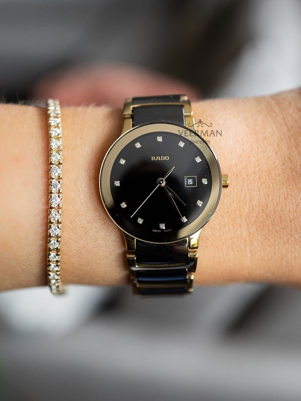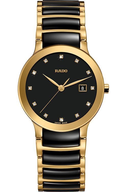 R-05283076 ראדו יבואן רישמי לנשים דגם קרמיקה מסדרת סנטריקס בלוח משובץ 12 יהלומים | שעון יוקרתי כולל 5 אחריות יבואן רישמי |Rado Centrix Diamonds Black Dial Watch, 28mm - R30528762