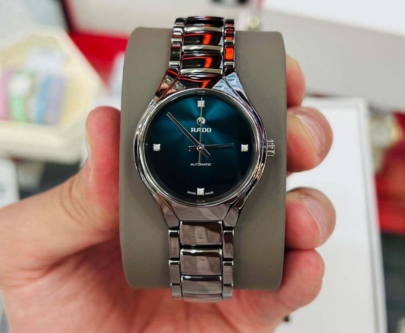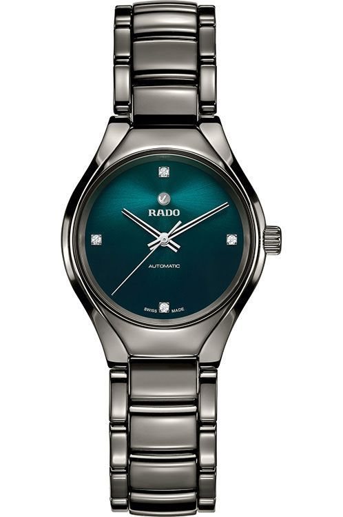 R-02433074 שעון יד ראדו מיוחד לאישה | דגם בלוח ירוק משובץ 4 יהלומים | מנגנון אוטומטי קרמיקה פלאזמה | 5 שנים אחריות | מלאי מוגבל בהחלט ! RADO True R27243742 Automatic Green Diamond Set Dial